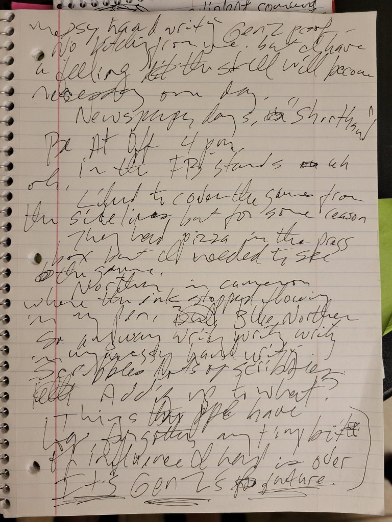 I had to take a lot of notes and I had to do it fast, at football games, city council meetings, interviews, press conferences. I didn’t have time to worry about penmanship.