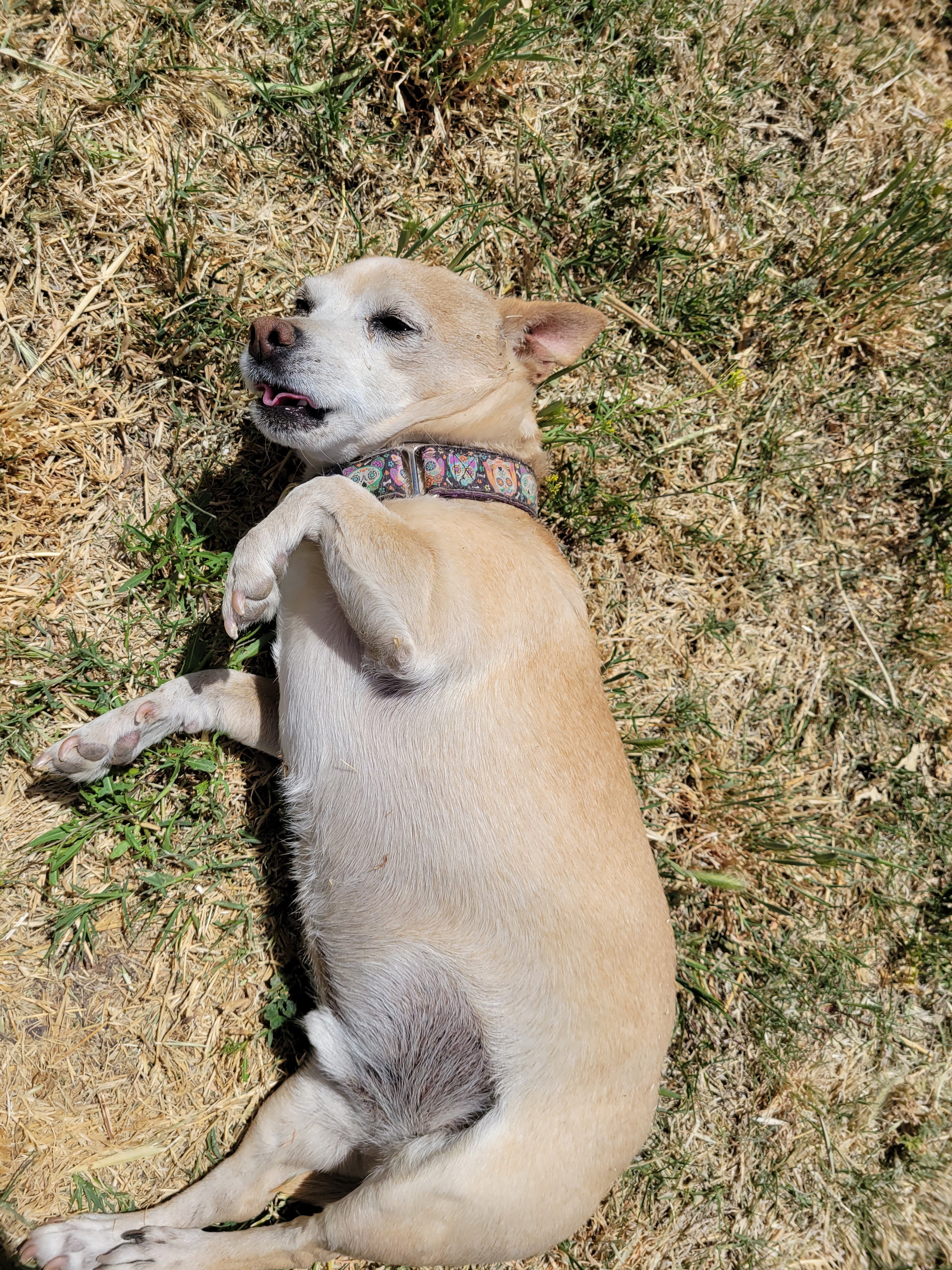 I think he missed his calling as a yard dog. He’ll spend the whole day outside, sunning if we let him. The weather has been nice, but it gets cold overnight in a desert town.