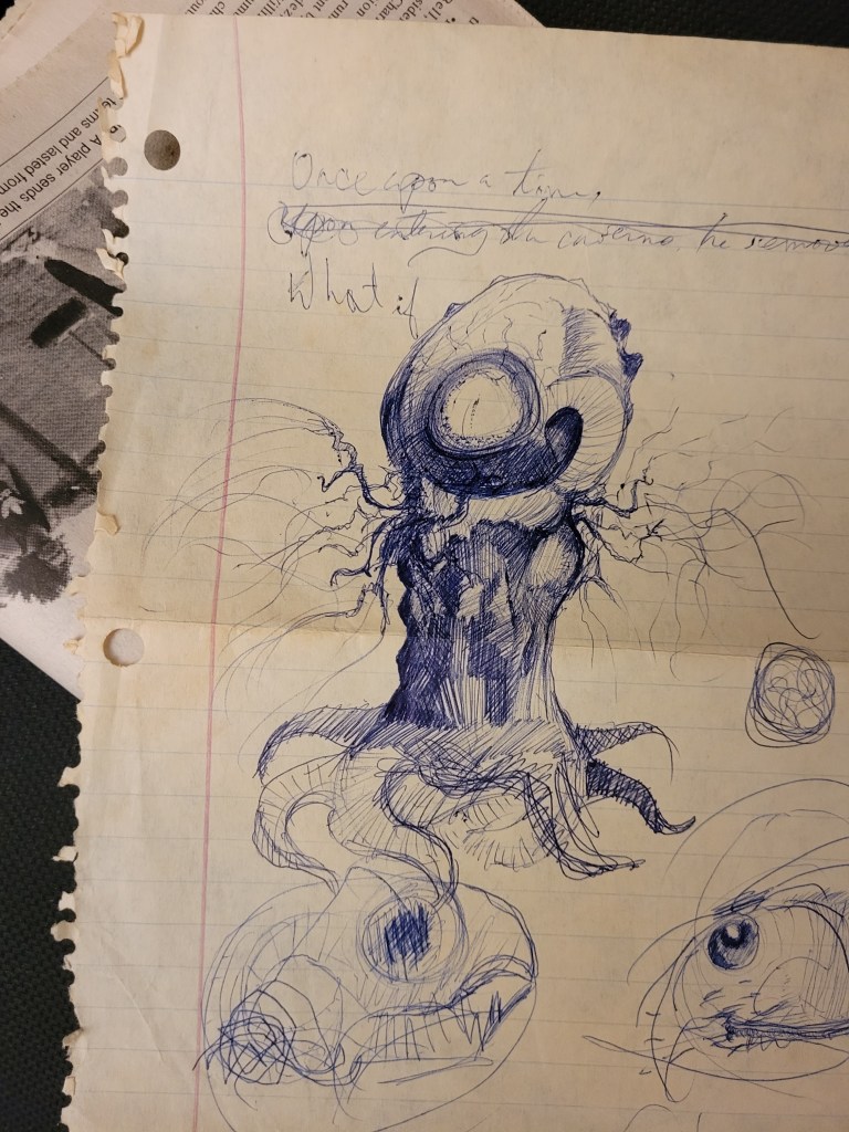 The newspaper folks had questions. The old sheriff saw “disturbing things” in my notebook. AKA, me talking about the time I smoked too much weed in college and some “Satanic” doodles of some alien monster I’d made up.